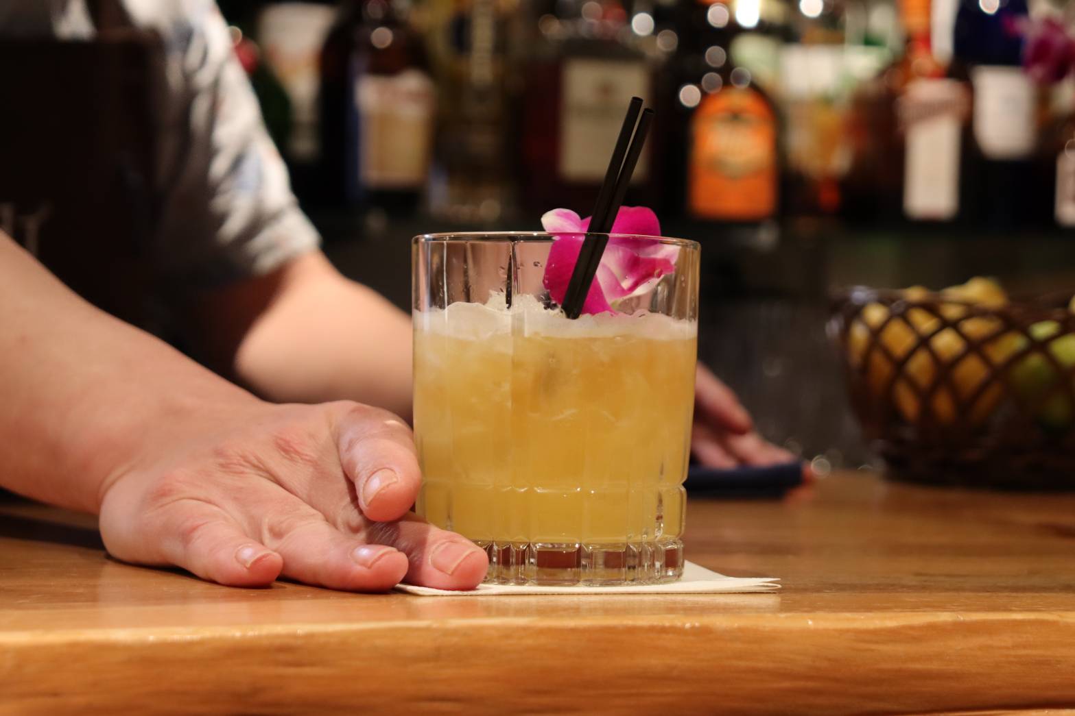 本格的なカクテルと100種類以上の洋酒、地元の旬の食材を使った料理も美味しいスペインバルです
